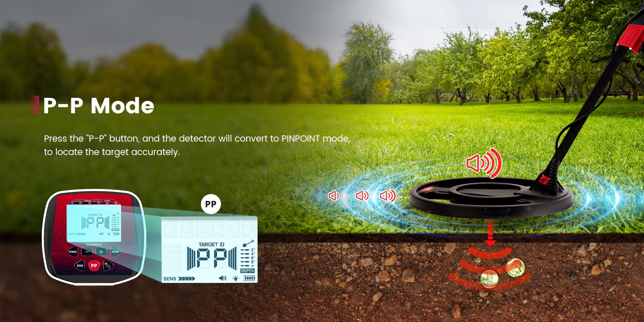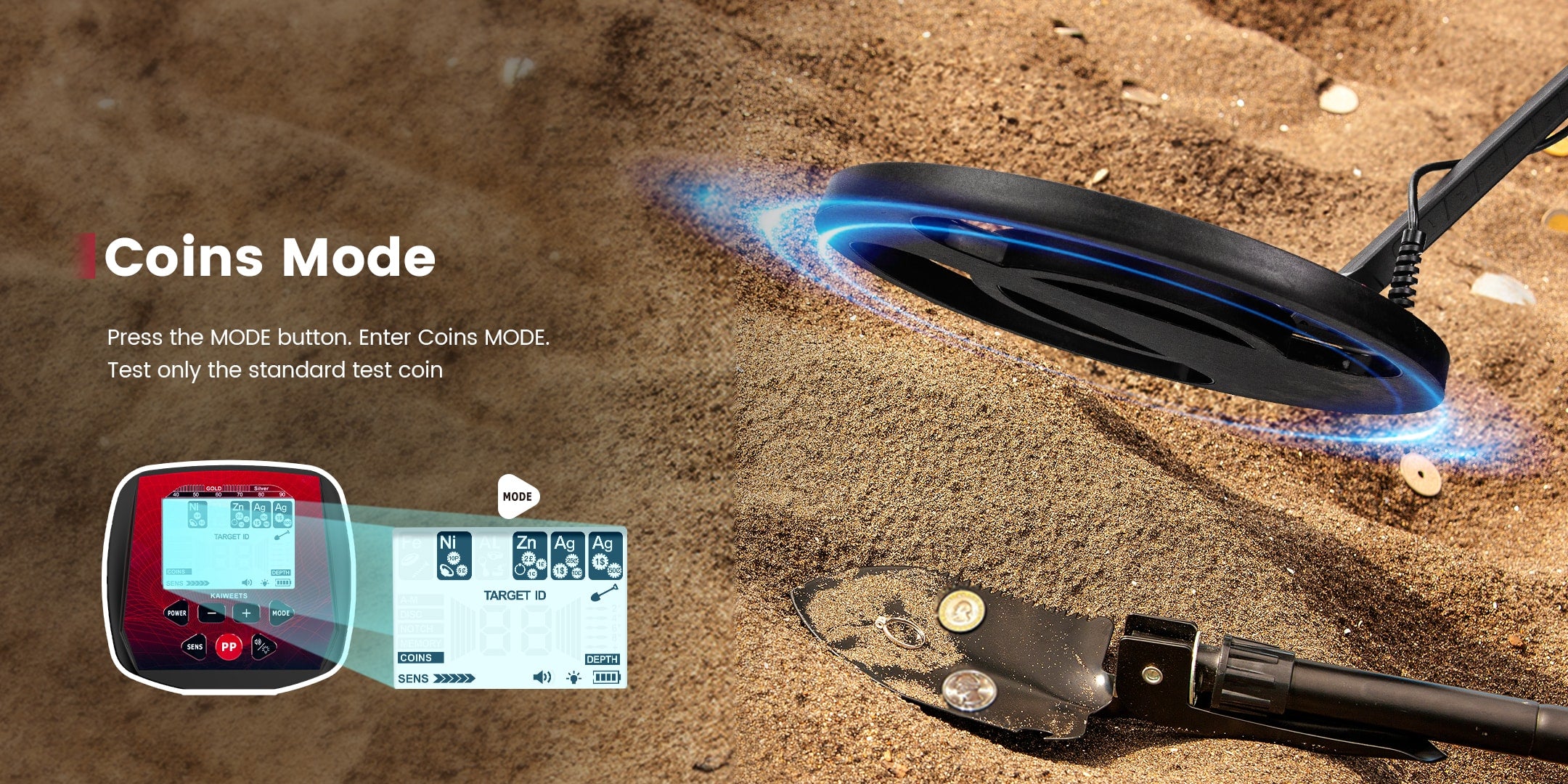 6 Detection Modes: A metal detector for adults has 6 distinct modes that allow you to search for the desired metals effectively. ① All metal mode: 6 kinds of metal targets can be detected. ② Disc mode: Remove unwanted metal targets sequentially. ③ Notch mode: Customize removal of unwanted metal targets. ④ Memory mode: Detect the only memorized metal target. ⑤ Coins mode: At this time, only coins can be detected. ⑥ Pinpoint mode: Accurately locate the target.