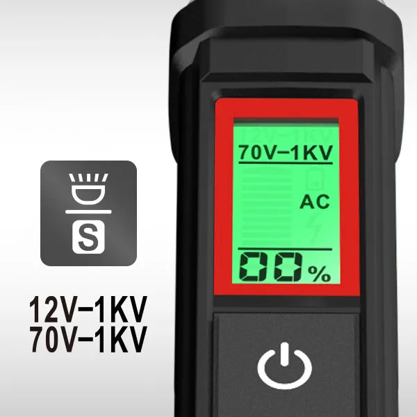 Detects standard and low voltage (12-1000V AC / 70-1000V AC) for more sensitive and flexible measurements. Press the S button to adjust sensitivity and adapt low range for doorbells, thermostats, irrigation wiring etc.; The NCV sensor automatically recognizes the voltage and displays it on the bar graph, and the percentage value can display the voltage signal intensity more intuitively.