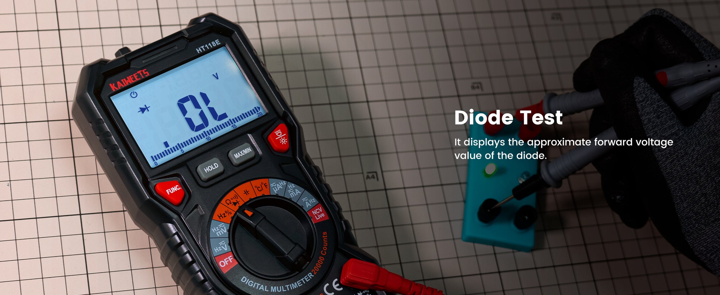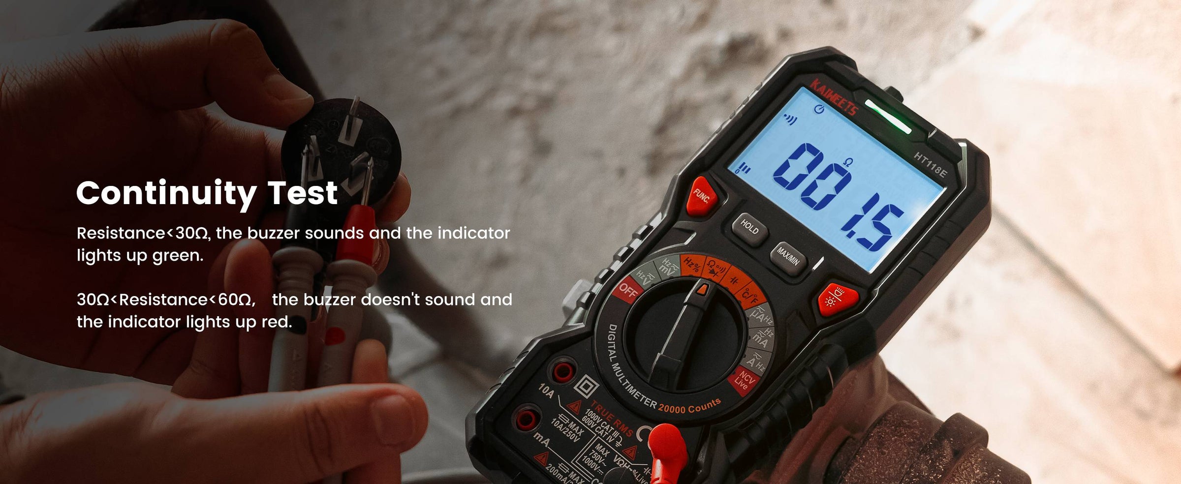 Higher Resolution - 20000 Counts: HT118E multimeter with more resolution bits allows for more accurate measurement results. The flashlight on the back ensures easy use in dimly lit places. Min/Max to record signal fluctuations. Stable kickstand, Pen slot on the back, Low battery prompt, Data retention, Auto power-off.