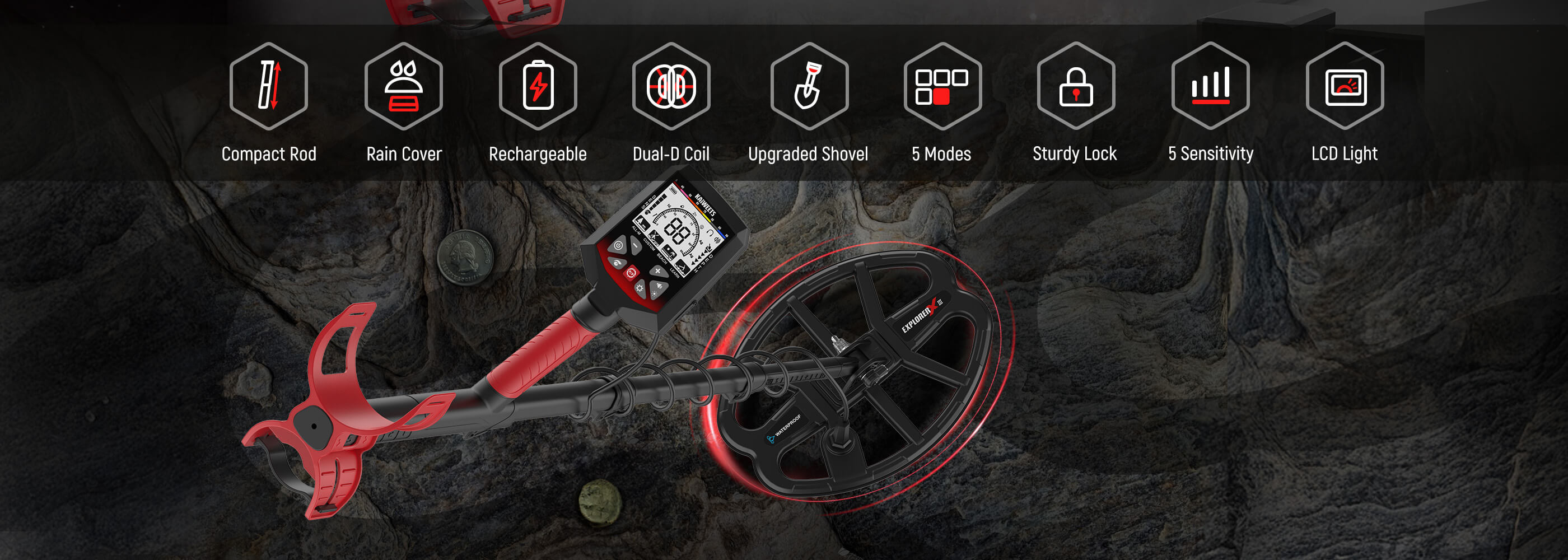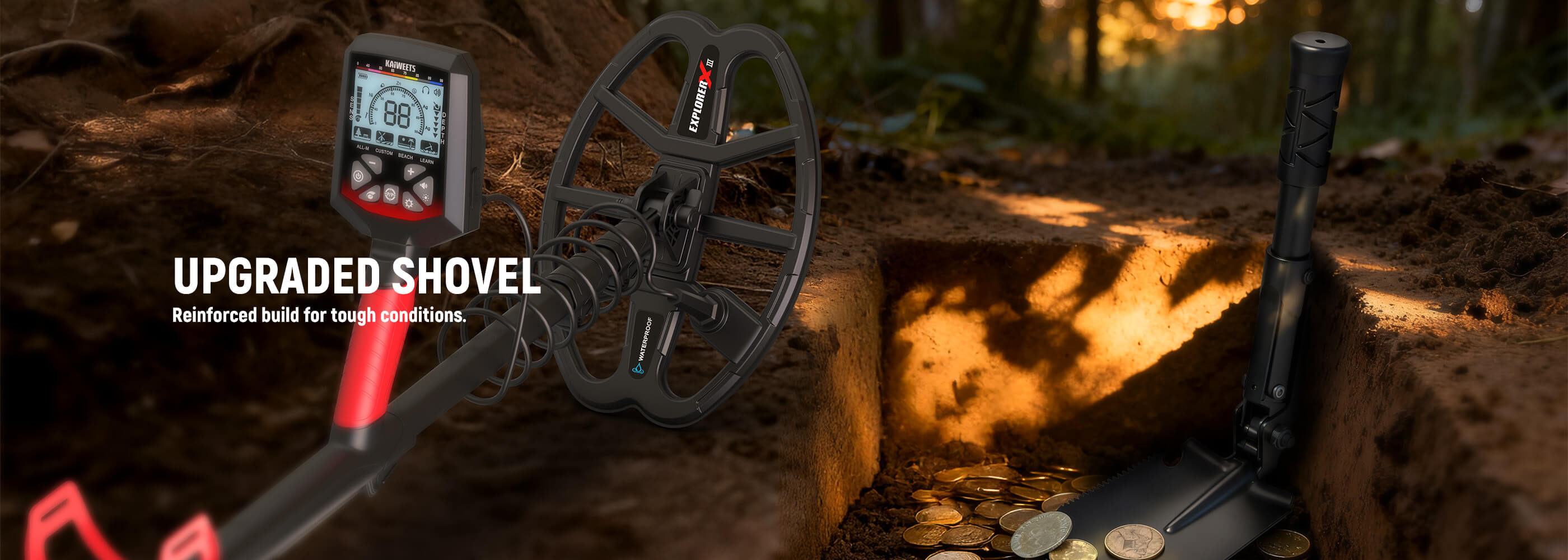 Clear LCD with Backlight & Complete Kit for Sale – Large LCD display with switchable backlight provides visibility in sunlight or low light. Includes upgraded digging shovel and accessories, making this a ready-to-use detecting kit for detector kids and adults. A versatile coin detector and pinpointer alternative, perfect for hobby or professional sale.