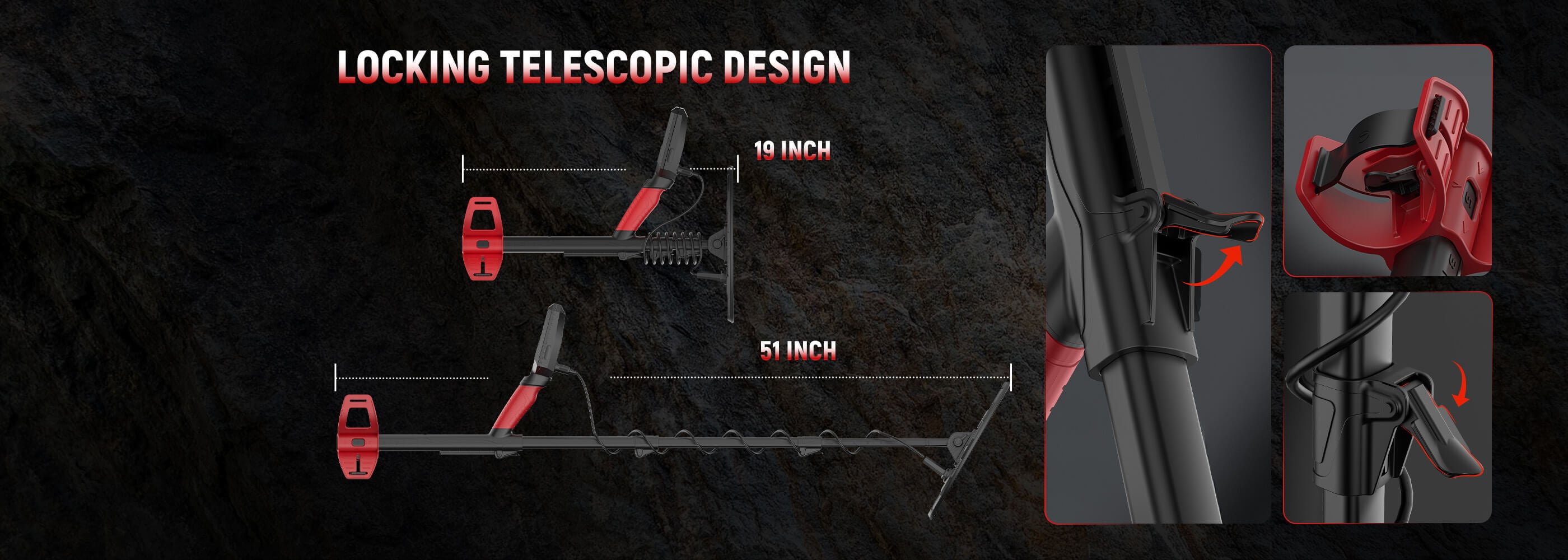 Collapsible & Durable Metal Detector – Upgraded telescopic shaft folds down to a compact size for easy carrying and storage. Reinforced buckles ensure stability, preventing loosening and allowing quick assembly for professional detectorists, beginners, and detector kids.