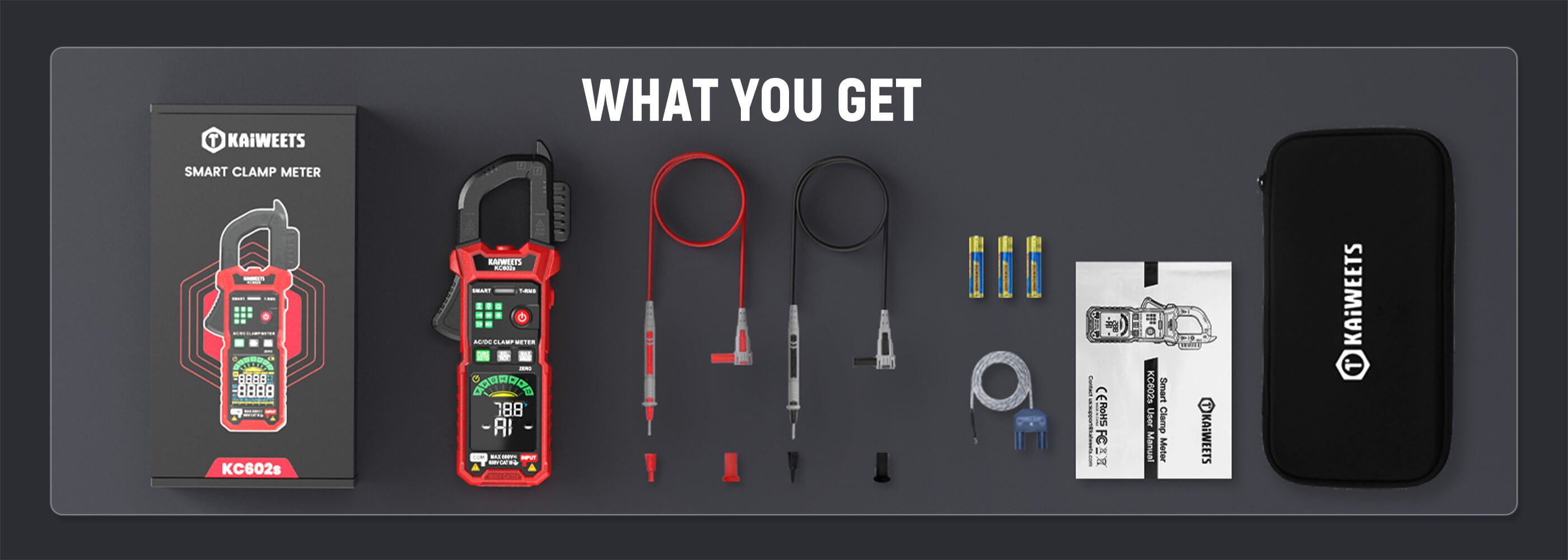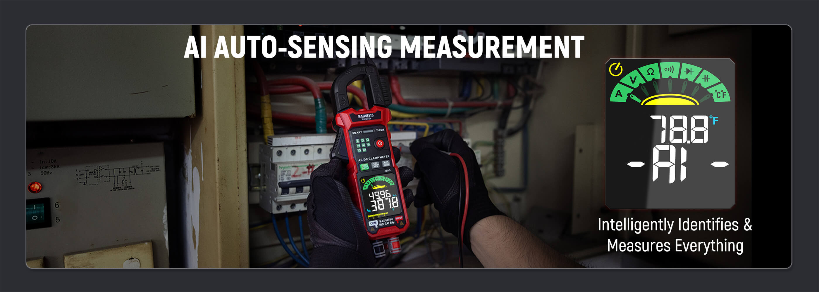 Smart AI-Powered Measurement: The KC602s Smart Clamp Meter features an intelligent measurement mode that automatically identifies and measures AC/DC voltage, AC/DC current, resistance, continuity, capacitance, diodes, and temperature without manual function selection, making it incredibly user-friendly for both professionals and DIY enthusiasts.