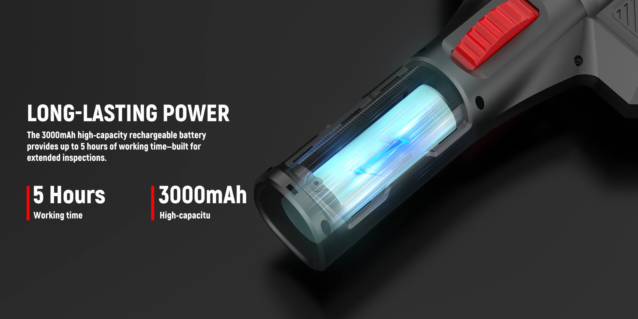 Powered by a 3000mAh rechargeable battery, this inspection camera offers up to 5 hours of uninterrupted use. A sturdy carrying case keeps everything organized, while included accessories—magnet, hook, side mirror, and a pre-installed lens protector—expand your inspection capabilities. Ready for any job, right out of the box.