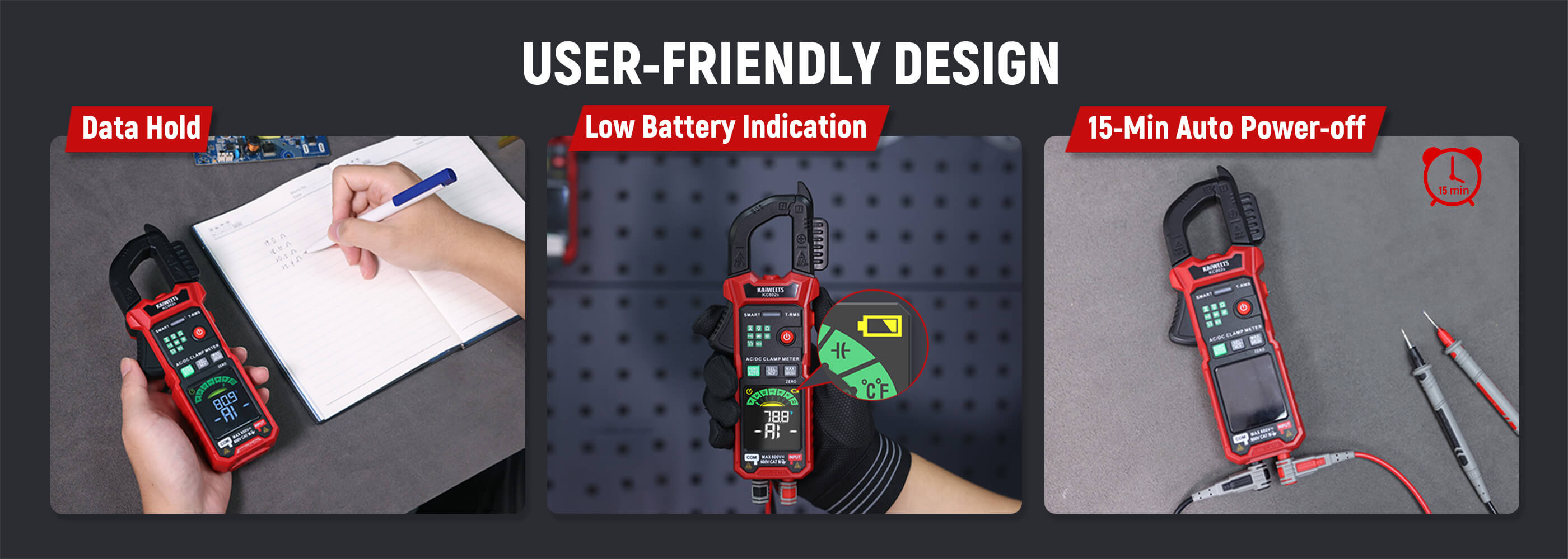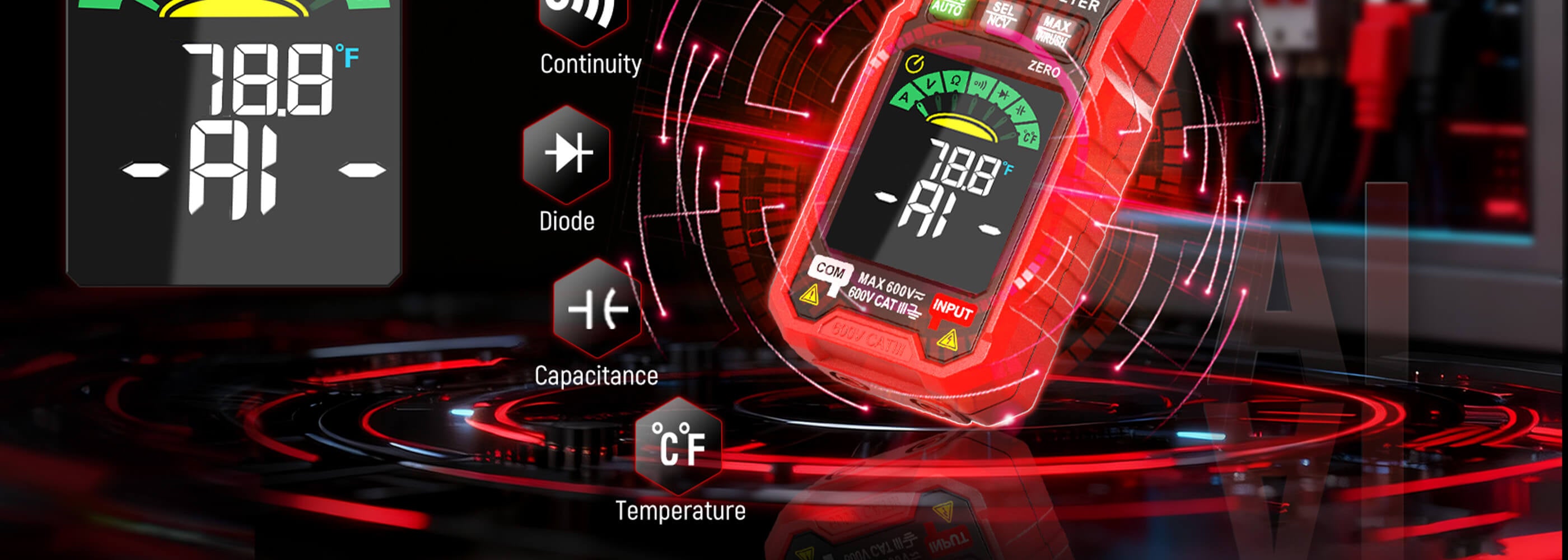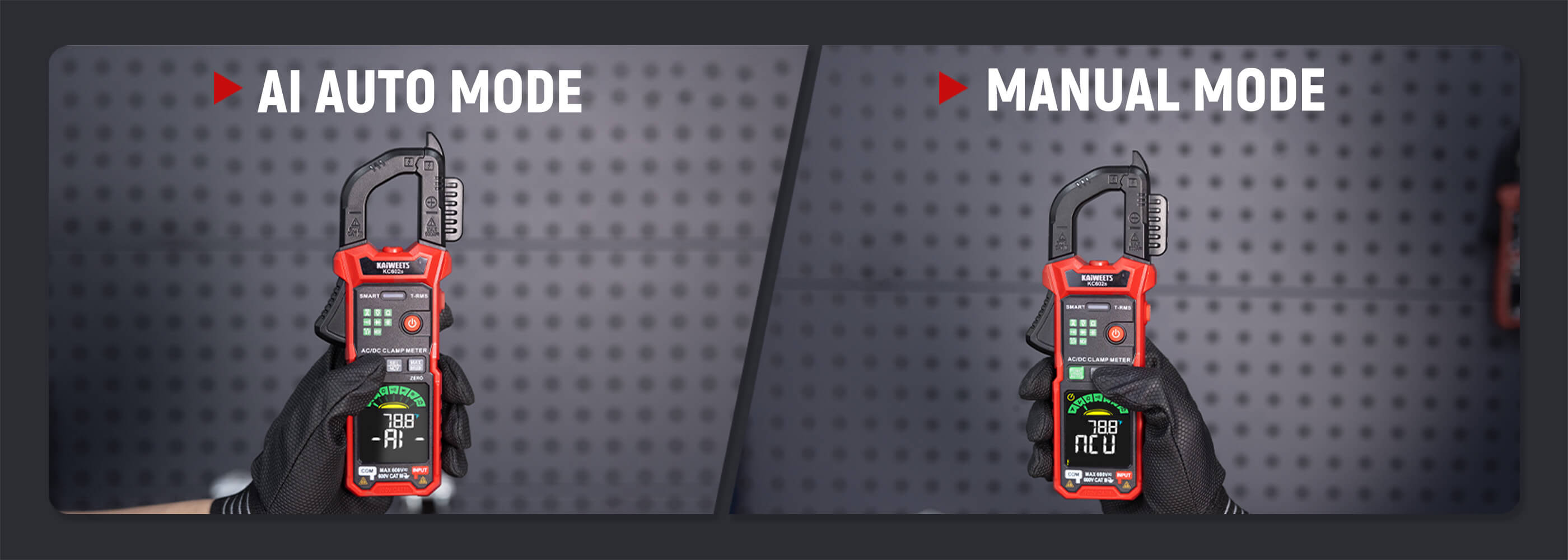 Smart AI-Powered Measurement: The KC602s Smart Clamp Meter features an intelligent measurement mode that automatically identifies and measures AC/DC voltage, AC/DC current, resistance, continuity, capacitance, diodes, and temperature without manual function selection, making it incredibly user-friendly for both professionals and DIY enthusiasts.