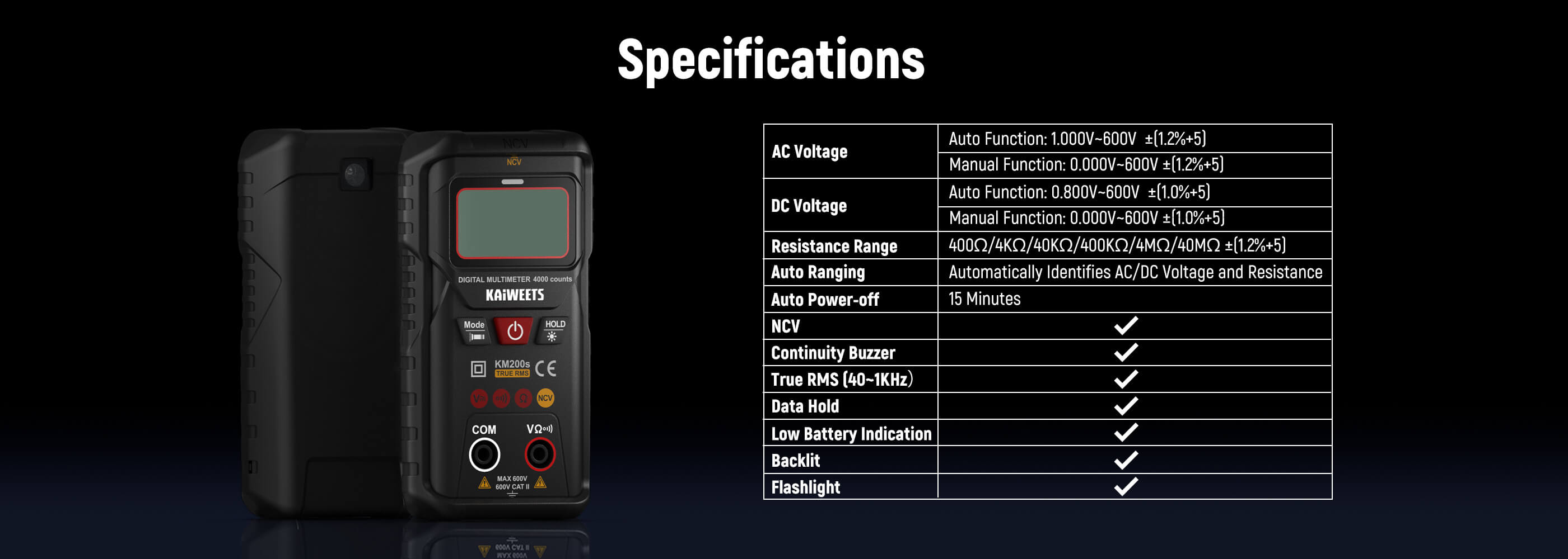 3-Year Warranty: Package includes a KM200s multi meter, 2x test leads, 2x AAA batteries, and user manual. KAIWEETS provides a 3-Year warranty, 24/7h after-sales service, ensuring your purchase is risk-free.