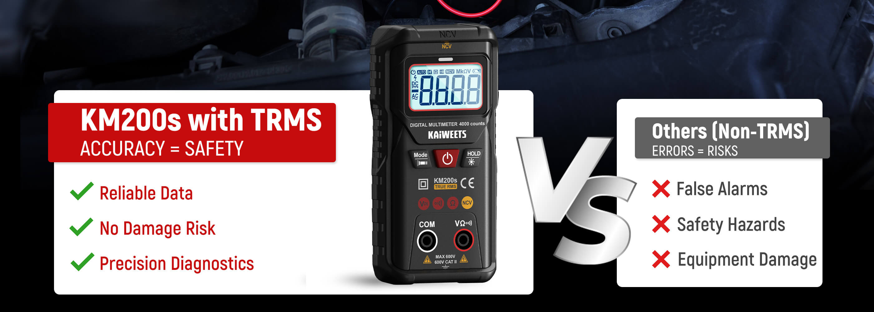 Smart Measurement: With smart auto ranging mode, the KM200s multimeter instantly recognizes and switches between AC/DC voltage, resistance, and continuity—no dial, no range, no guesswork. Measure faster, easier, and more accurately every time.