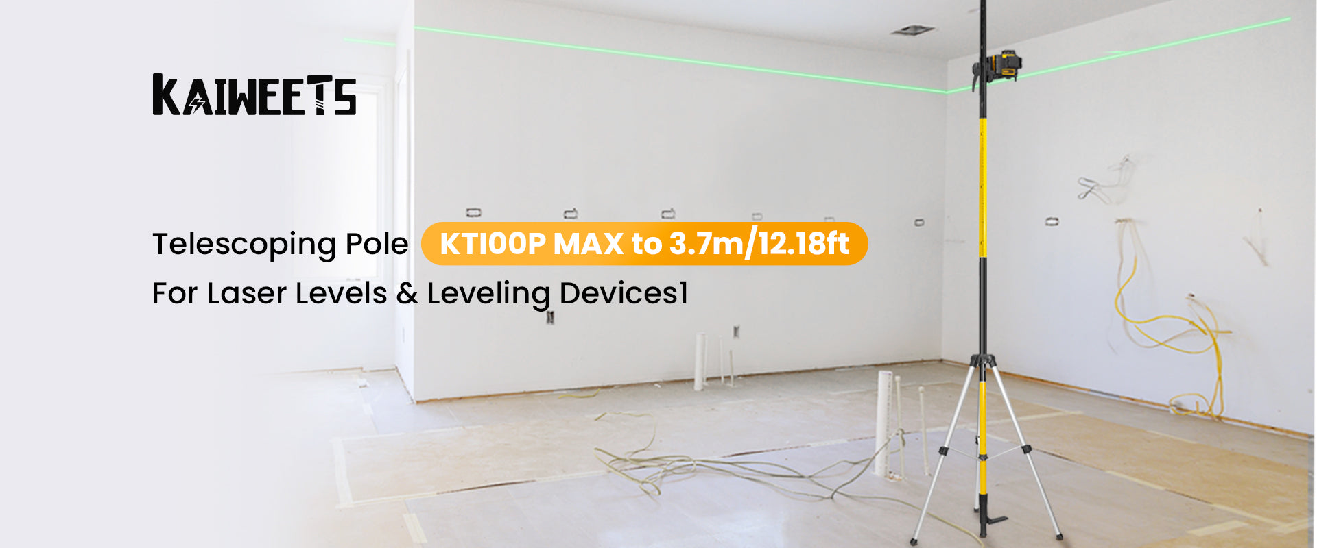 KAIWEETS KT-100P Trépied élévateur de niveau laser professionnel avec tige télescopique de 3,7 m/12,18 pieds (max)