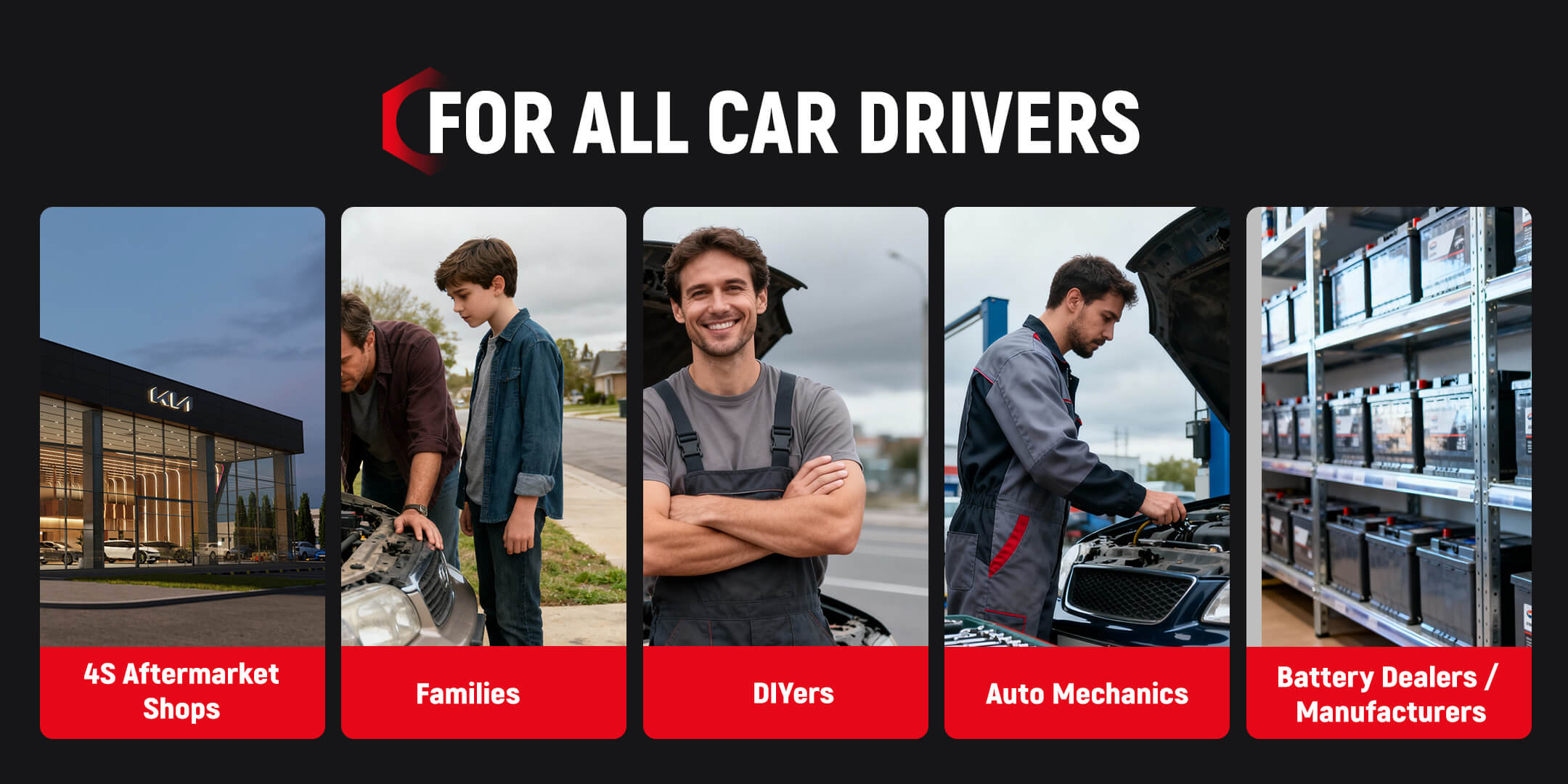 Comprehensive Battery Diagnostics: Utilizing advanced conductivity technology, battery tester accurately measures a battery's SOH (State of Health), SOC (State of Charge), voltage, resistance, and CCA. Gain a complete understanding of battery health and the starting condition of starter motors. Perfect for commuters, multi-vehicle households, winter drivers, automotive factories, and repair shops.