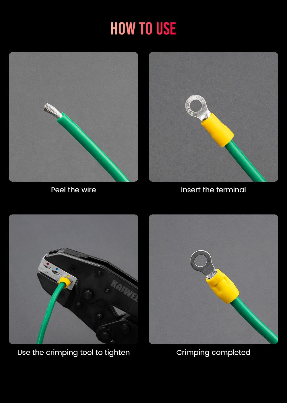 the easy way to crimp wires. takes the guesswork out of crimping just select the correct size and crimp away